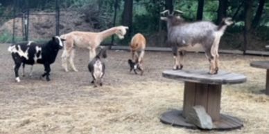 We have sheep, alpaca, and goats. Spring time we have baby goats.