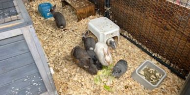 We have a bunnies and guinea pigs display in our barnyard recess area. Kids love to watch them play.
