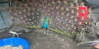 These are our Peacocks. Here is a fun fact about peacocks is that only the males are actually called "peacocks"!
